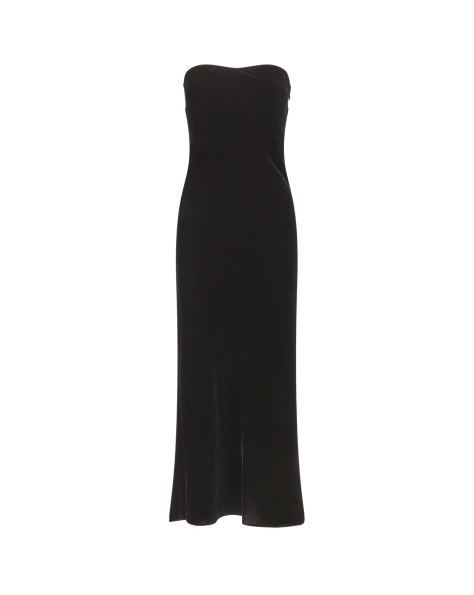 Less is more with the Flora dress. This strapless LBD is all clean lines and a sleek. streamlined silhouette—perfect for date night or cocktail hour. For day. just style with a jean jacket and sneakers.