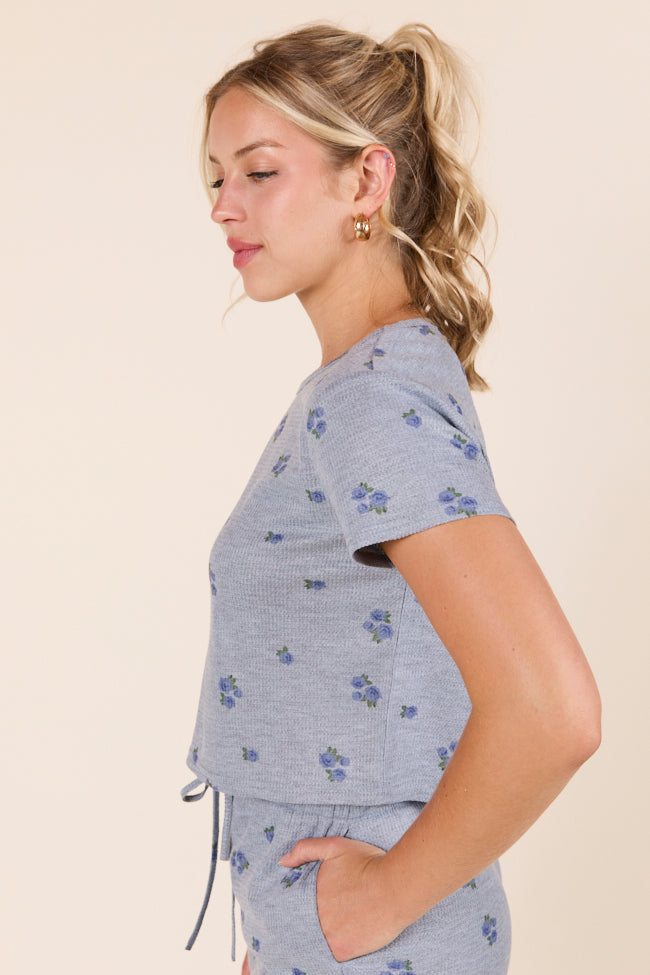 Lainey Waffle Knit Blue Floral Pajama Top