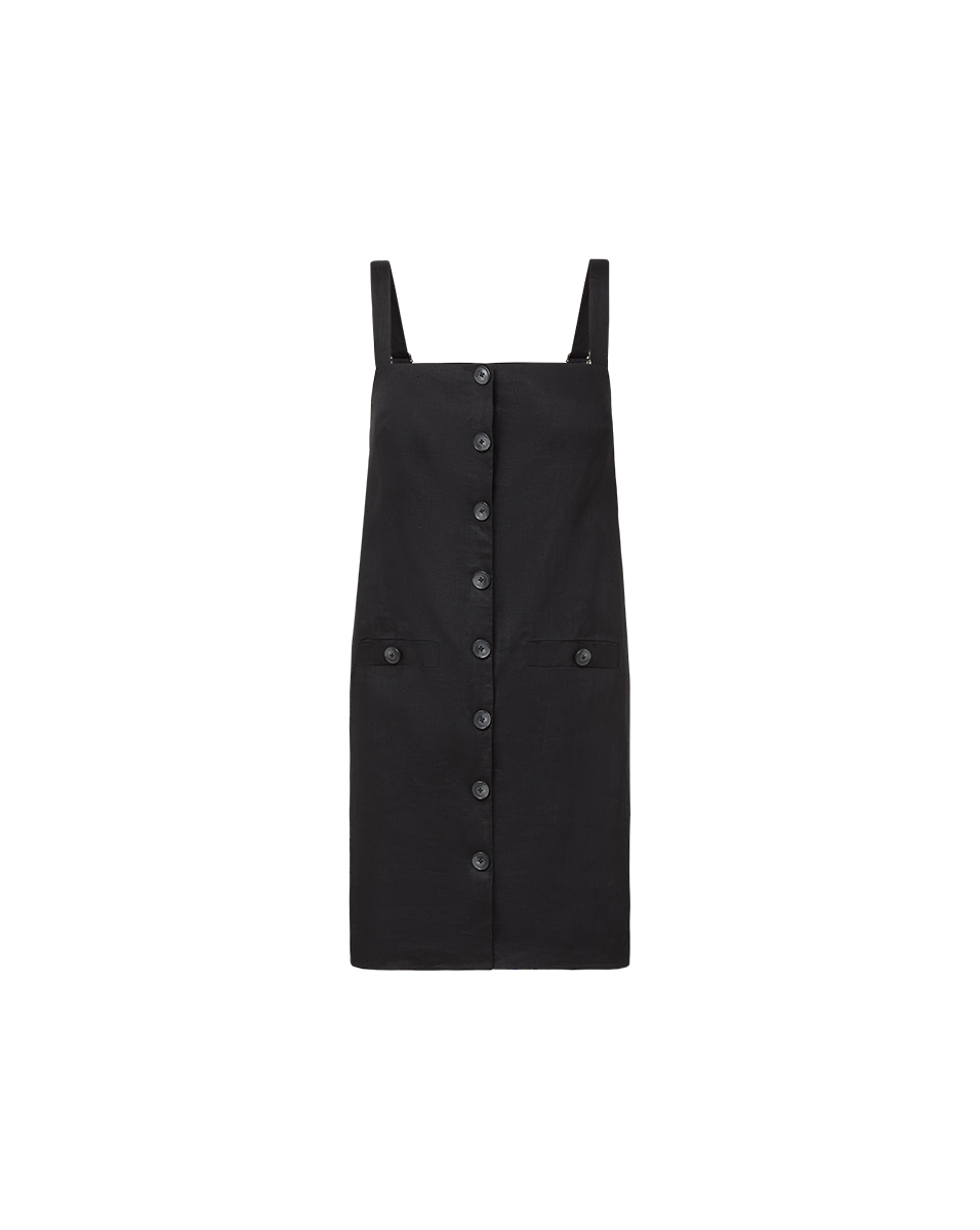 A sixties shift dress. reimagined for today. Expertly tailored from lightweight and breathable linen. the Nico mini dress features a relaxed fit. a square neckline. and comfortable wide straps. Utilitarian pockets complete the LBD. Versatile and timeless. this pairs well with sandals. sneakers. and booties alike.